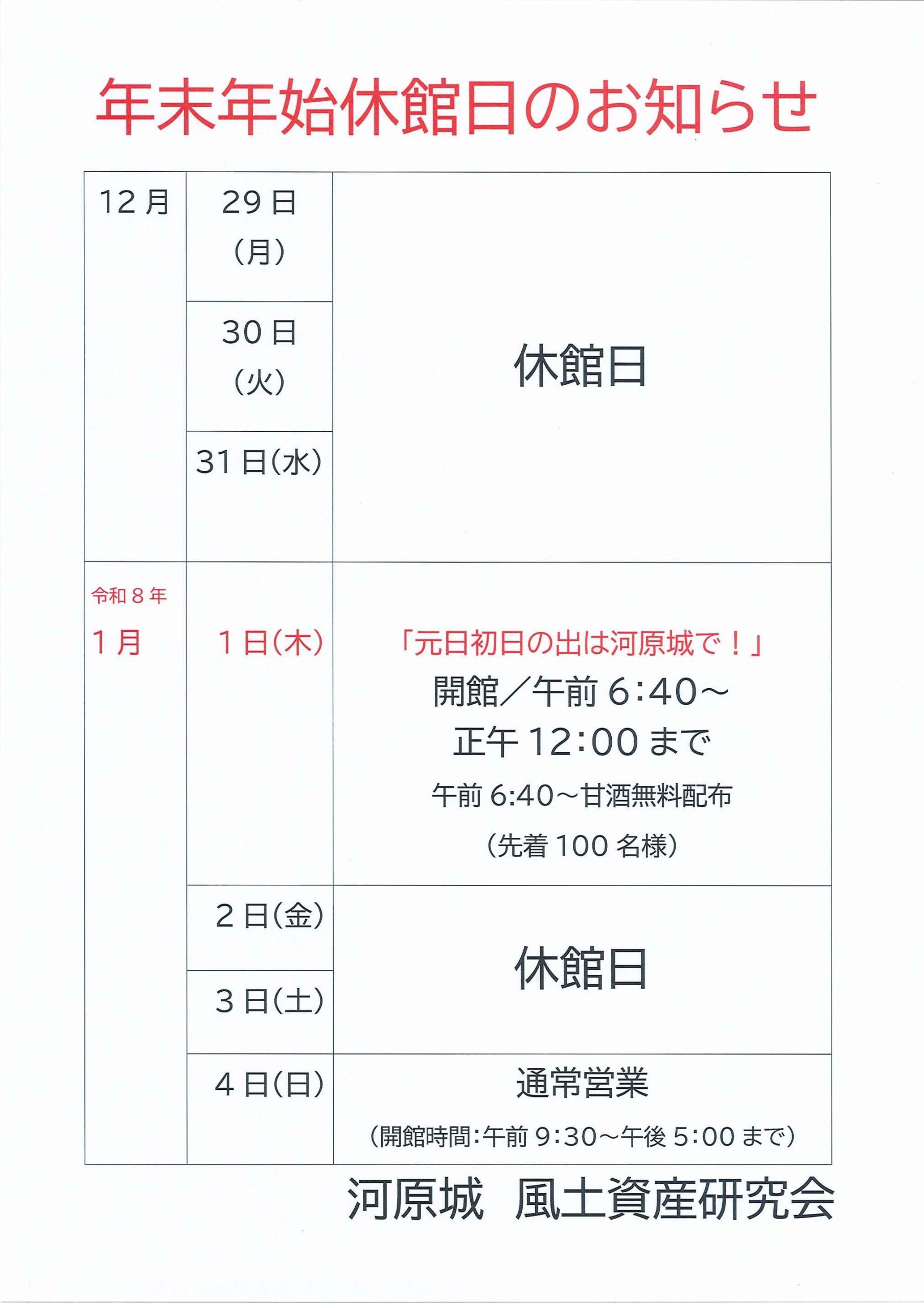 R7.12.28 年末年始のお知らせ(HP)