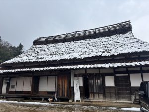 昔ながらの茅葺屋根の古民家で囲炉裏を囲んで暖をとりながら作業します。